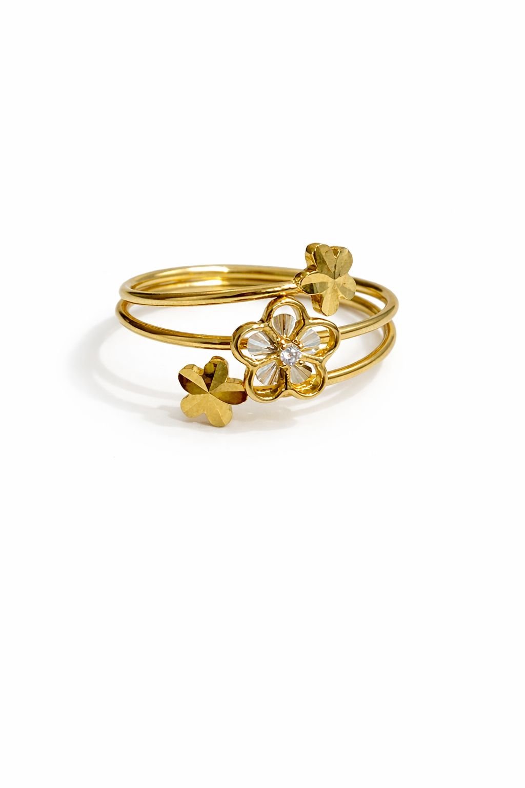 Bague fleur d’or 18k deux tons, taille 6, 1.86g