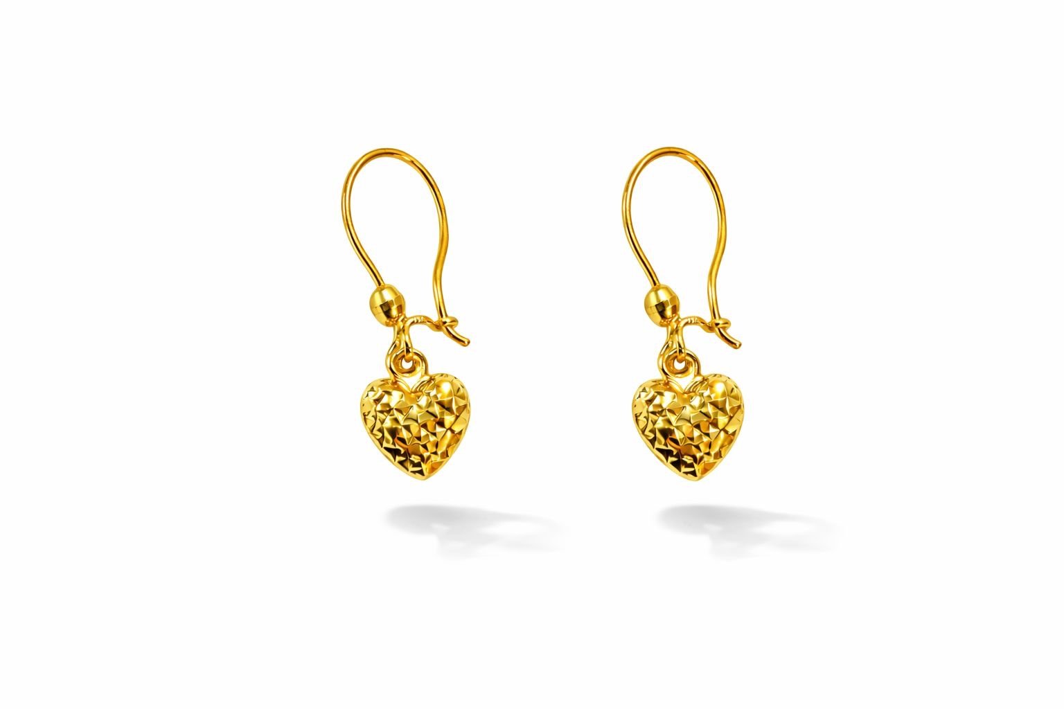 Boucles d’oreilles d’or 18k cœurs pendantes 1.35g