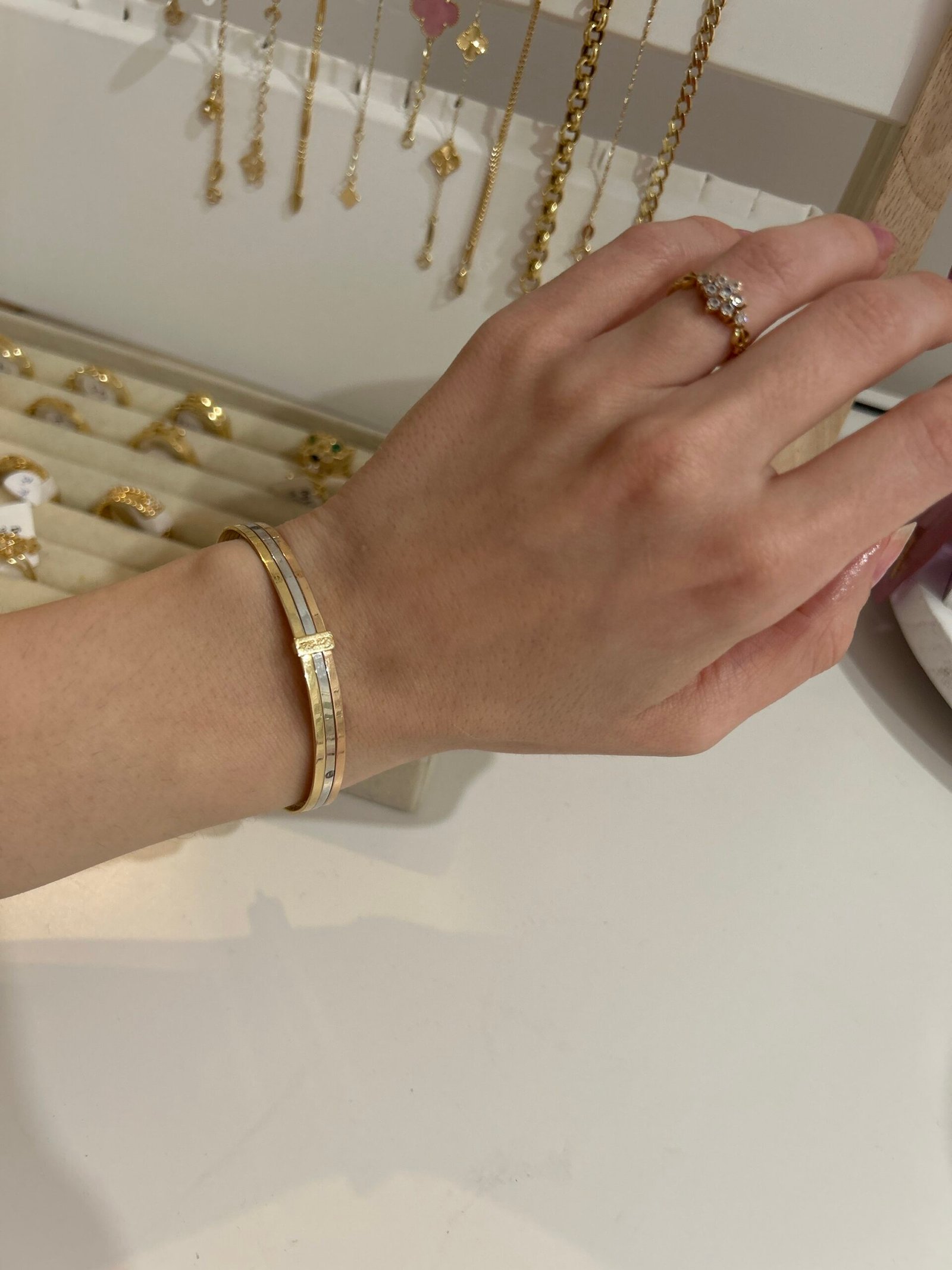 Attention ‼️ la couleur de l’or blanc n’a pas été rodhié et on sent quelques irrégularités dans la couleur