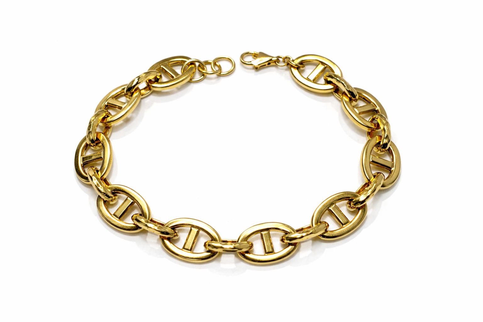 Bracelet grains de café d’or 18k grosses mailles de 10mm d’épaisseur , 18-19cm, 8.54g