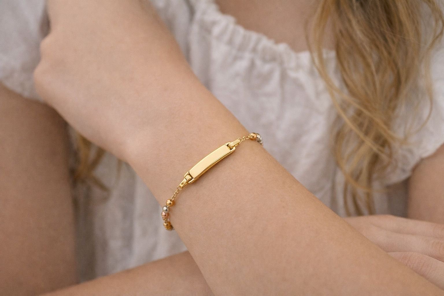 Bracelet trois tons d’or 18k pour enfant (13-15cm) 2.12g